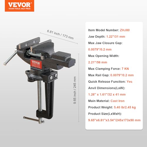 Introducing the Bench Vise, a versatile tool that is a must-have for woodworking enthusiasts and DIYers alike. This 2.2-inch dual-purpose table vise is designed to be clamped onto your workbench, providing a secure grip for a wide range of projects. The vise features a multifunctional jaw that can accommodate various shapes and sizes of materials, making it ideal for a variety of tasks.