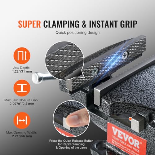 To clean the Bench Vise, simply wipe it down with a clean, damp cloth after each use to remove any dust or debris. Avoid using harsh chemicals or abrasive cleaners, as they may damage the vise’s finish. Regular maintenance is also key to ensuring the vise operates smoothly; lubricate the moving parts as needed to prevent rust and corrosion.