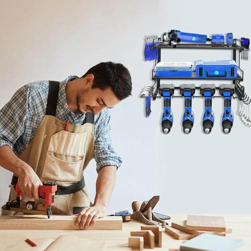BNNMKL Power Tool Organizer Wall Mount, 3 Layers Cordless Drill Storage Rack, Super Large Storage Rack for Power Tool Drill, Screwdriver and Drill Holder Battery Rack or 4 Drill Holders