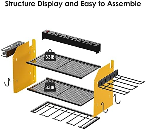 Our yellow 6 drills holder with an 8 plug power strip is specifically designed to keep your garage or workspace neat and organized. Crafted from heavy-duty metal, this utility rack ensures durability and can withstand the weight of your power tools.