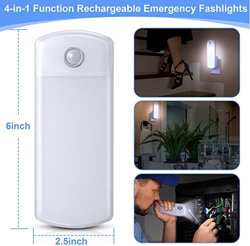 Enhon 3 Pack LED Power Failure Light, 4 in 1 LED Rechargeable Plug in Flashlights with Motion Detection, LED Emergency Lights for Home Power Failure Black Outs Hurricane Supplies