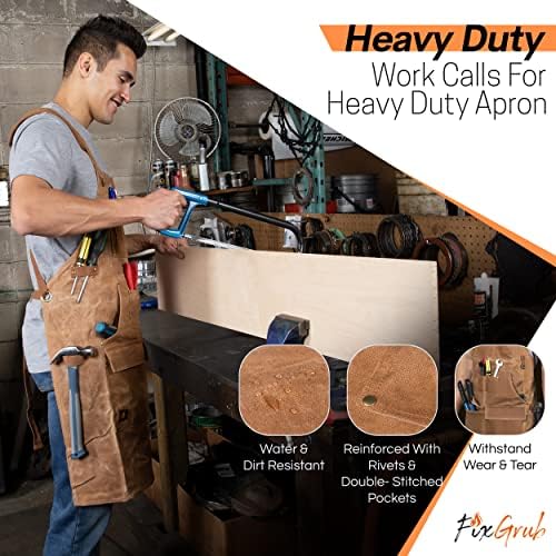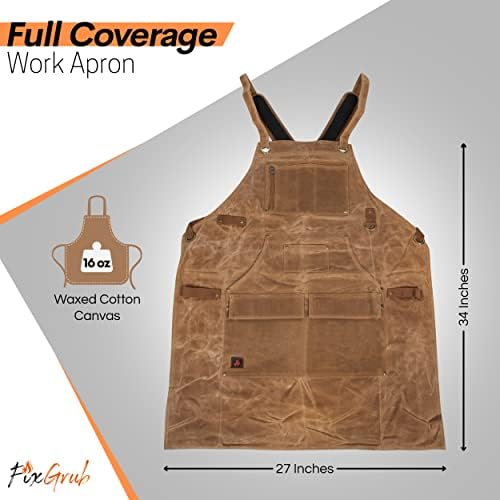 FixGrub Woodworking Apron – Durable 16 oz Waxed Canvas Work Apron