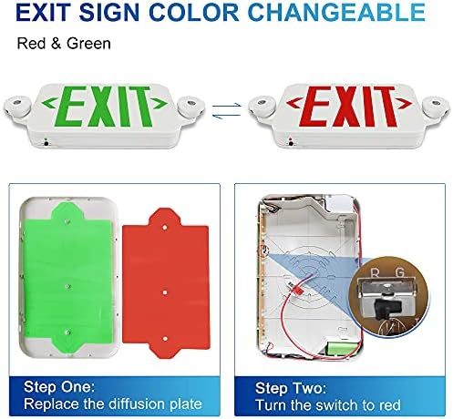 LEDIARY 2 Pack Exit Sign with Emergency Lights, Red and Green Exit Sign Color Changeable, UL Certified, Battery Backup and Two LED Adjustable Head, Exit Sign for Business