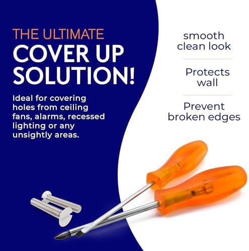 Are you looking for a reliable and aesthetically pleasing solution to cover your ceiling electrical fixtures? Look no further, as Mr. Munis presents the 5 Inch White Metal Ceiling Plate Cover. This pack of 2 covers is designed to fit 3 1/2″ round hole or octagon box openings on ceilings or walls, providing a clean and seamless finish to your electrical fixtures.