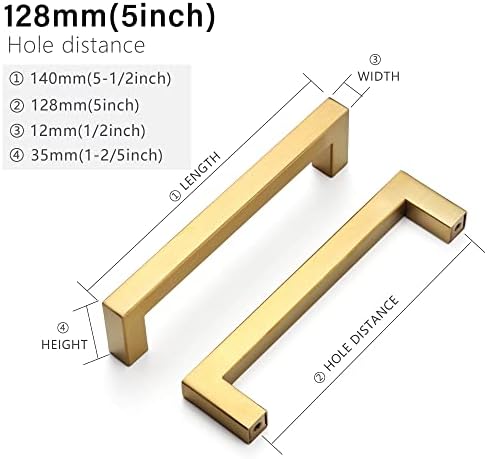 The Redunest Cabinet Pulls Gold Cabinet Handles offer several advantages that make them a standout choice for your cabinet hardware needs. These handles are made of high-quality stainless steel, which means they are corrosion-resistant and built to withstand the test of time. The gold finish adds a touch of sophistication to any cabinet, and the square design offers a modern and sleek look. With a 128mm hole center, these cabinet handles are also easy to install, making them a convenient option for any DIY project.