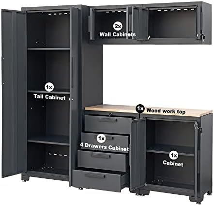 TCE 6 Piece Organizer Chest Tool Storage Cabinet, Black/Grey
